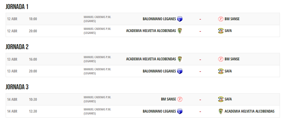 El Domingo si Alcobendas vence a BM Sanse y Leganés gana a BM Safa tendremos una auténtica final en la que Bm Leganés y La Academia Helvetia Alcobendas disputarán el primer puesto de esta fase final.