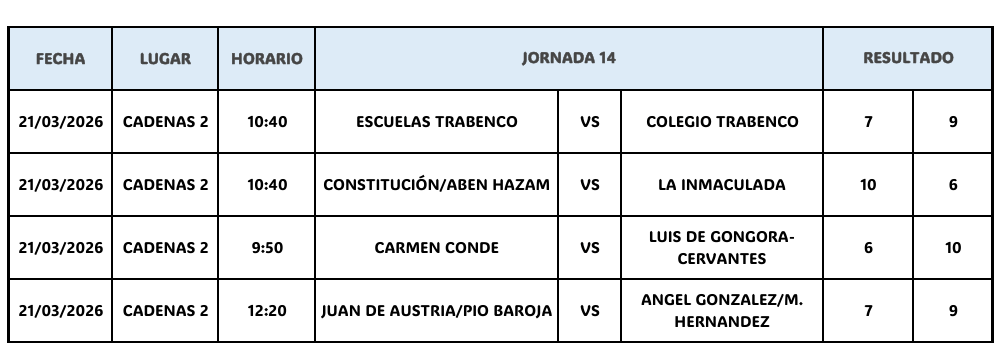 Llegamos a la parte final de esta emocionante liga escolar y comienza el sector final que decidirá la clasificación final de esta temporada.