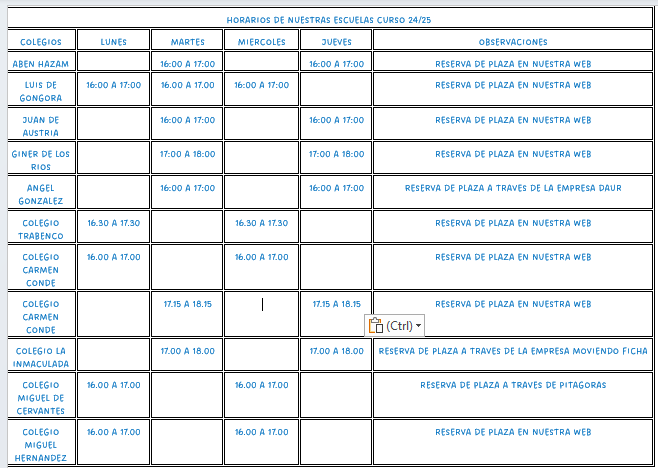 Las llamadas actividades extraescolares, tienen como finalidad, completar la oferta educativa del centro: idiomas, informática, artes plásticas, teatro y, por supuesto, DEPORTE.
